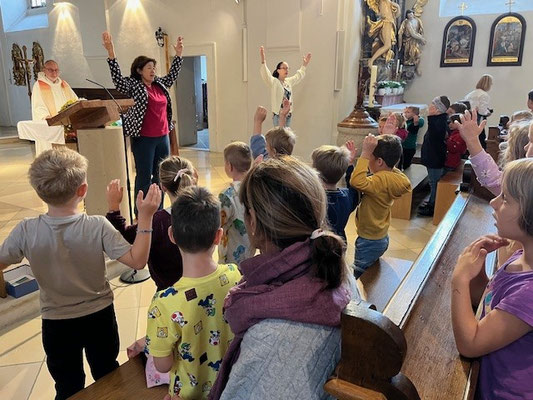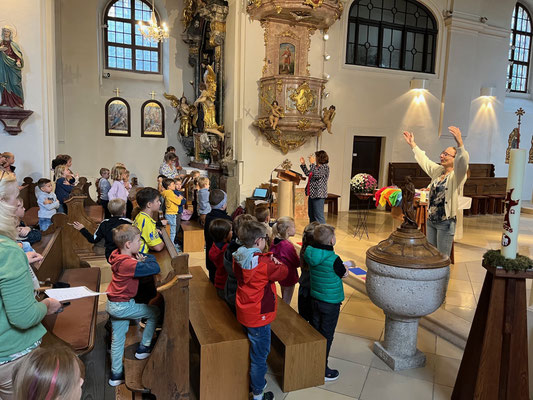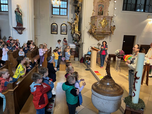 Mit viel Schwung und schönen Gedanken zum Thema Regenbogen feierten wir in der Gainfarner Kirche einen Gottesdienst.