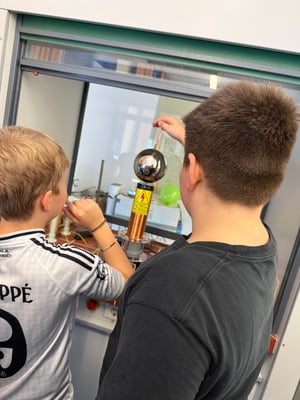 Auch in den Physik- und Biologieräumen gab es viel zu entdecken. Besonders beeindruckend waren die musikalischen Physikkonstruktionen, die das Spielen eines Klaviers mit Wasserschalen und Elektrizität ermöglichten, sowie die Roboter, die mit Fernbedienung gesteuert werden konnten. Die Kinder erfuhren Interessantes über Fossilien und bastelten zum Abschluss noch ein eigenes Fossil aus Salzteig.