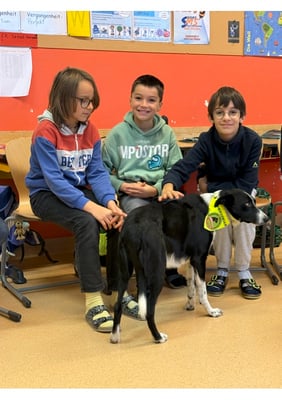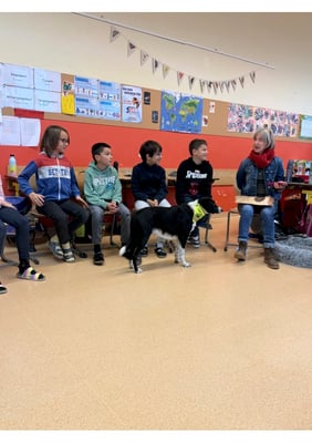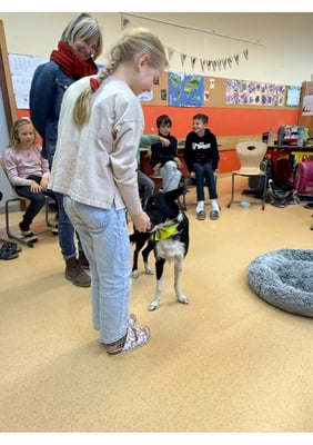 Am 17. November besuchte Frau Pribil gemeinsam mit ihrem Therapiehund Cooper die Klasse 4a. Die Kinder erfuhren dabei Interessantes über Hunde und lernten, wie man einem Hund ruhig und respektvoll begegnet.
