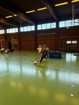 In der Turnhalle warteten zahlreiche Sportstationen, bei denen Geschick, Schnelligkeit und Teamgeist gefragt waren. Mit viel Freude probierten die Kinder verschiedene Ballspiele und Geschicklichkeitsübungen aus und hatten dabei sichtlich Spaß.