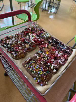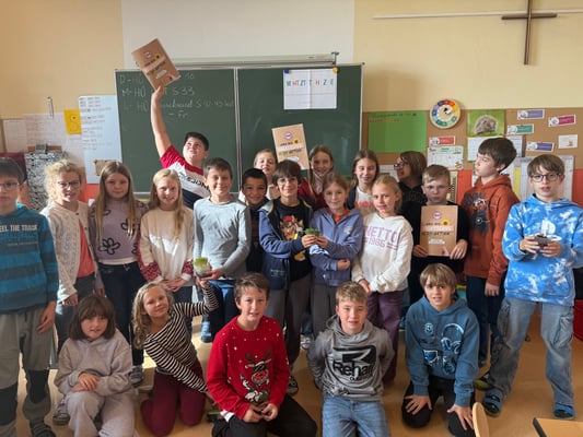 Zum Abschluss unseres Schokoladenprojekts durften wir gemeinsam mit der 4b in kleinen Gruppen eigene Bruchschokolade herstellen. Dabei konnten die Kinder jeden Schritt der Herstellung miterleben und ihre Schokoladentafel ganz individuell gestalten.