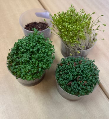 Das Highlight des Projekts war der Kresseversuch: Die Kinder pflanzten Kresse auf vier verschiedene Arten und beobachteten aufmerksam, wie sie wuchs und sich entwickelte. Nach dem Experiment wurde die Kresse geerntet und natürlich gleich bei der Jause probiert!