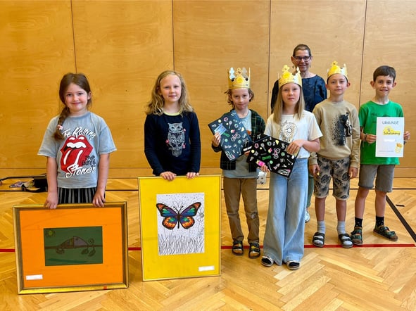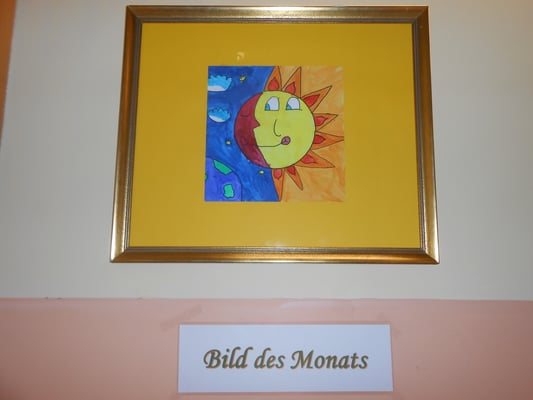 Im Rahmen des Unterrichts "Bildnerische Erziehung" entstehen an unserer Schule teils wunderschöne Kunstwerke. Als ein Element der Stärkenorientierung werden jedes Monat die "Bilder des Monats" gekürt. Dabei werden vom Kollegium aus allen in einem Monat entstandenen Zeichnungen der 1. und 2. sowie der 3. und 4. Klassen die beiden schönsten ausgewählt und bei der Monatsversammlung präsentiert. Die Bilder hängen dann einen Monat lang in einem besonders schönen Rahmen für alle gut sichtbar im Stiegenhaus unserer Schule, bis sie im nächsten Monat von den neuen Bildern abgelöst werden.