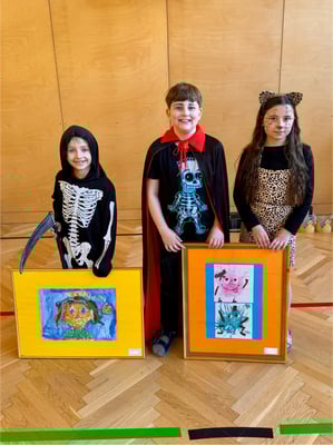 Lisa-Marie, 3a und Leonie, 2a, freuen sich, dass ihre Zeichnungen "Bilder des Monats" sind.